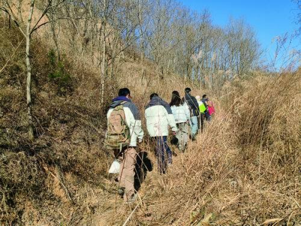 隆冬时节,厢寺川王家沟一带的树木早已落尽了叶子。寂静山林间,几声鸟鸣清脆。“轰隆隆”的摩托声由远及近,刘潇博和同事又进山了。车过处,黄土扬起,他们的背影逐渐模糊在尘烟里,消失在沟壑深处。