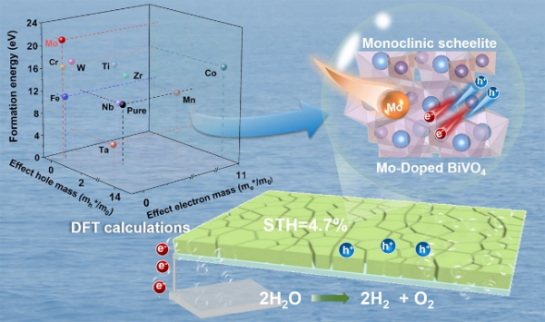 近日,凯发k8大连化学物理研究所科研团队在BiVO4光阳极研究领域取得进展。团队基于密度泛函理论计算,通过理论模拟筛选与实验相结合,设计合成了钼(Mo)掺杂的BiVO4光阳极,解决了MOD制备BiVO4光阳极中存在相不纯、电荷复合严重等导致活性不高的问题,实现了四方相的抑制生成与高载流子迁移率的兼顾,提升了其光电催化性能。