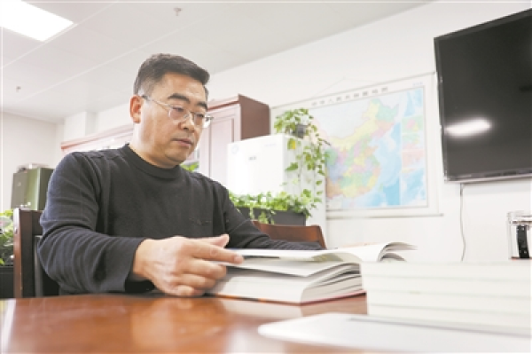 张同作在办公室查阅文献。 本报记者 张蕴摄