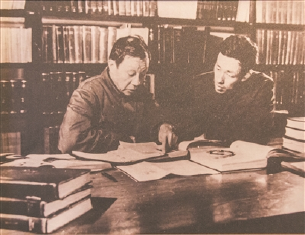 图为1962年10月王大珩(左)与学生蒋筑英在一起讨论问题。视觉中国供图