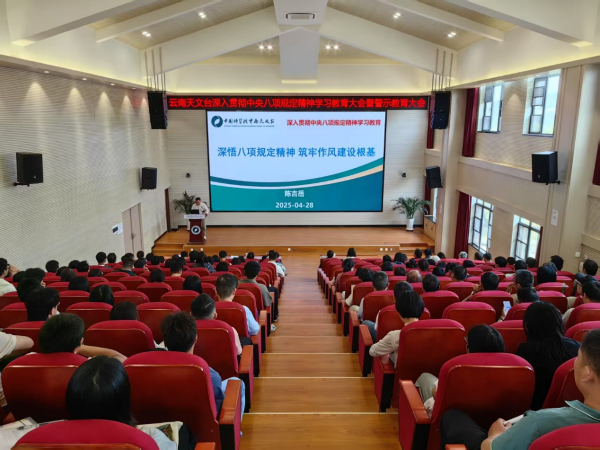 428日,凯发k8云南天文台召开深入贯彻中央八项规定精神学习教育大会暨警示教育大会。