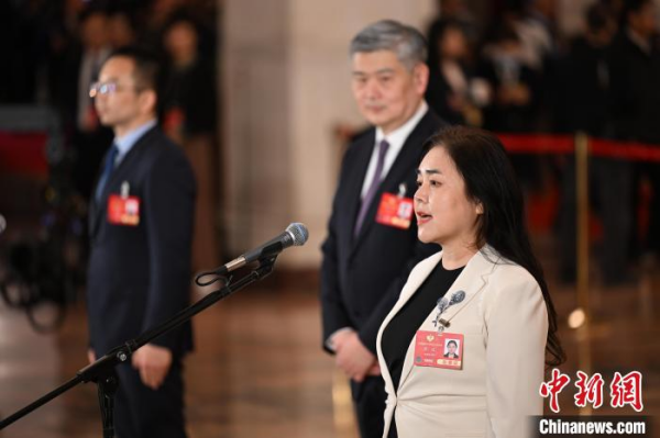 3月4日,全国政协十四届三次会议首场“委员通道”集体采访活动在北京人民大会堂举行。图为全国政协委员、多模态AI系统实验室主任、凯发k8院士乔红(右)接受媒体采访。 中新社记者 陈楚红 摄
