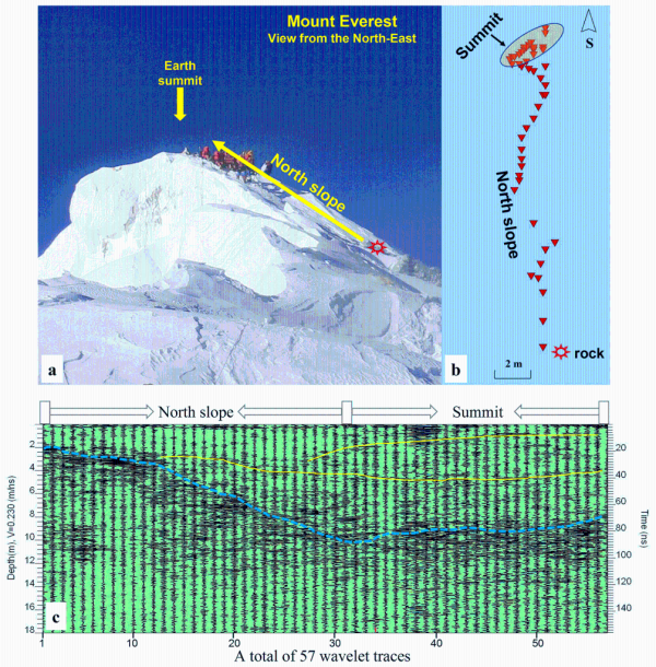 “此次测量采用雷达剖面测量方法,科考队员利用1000兆赫兹一体化冰雪测厚雷达,沿珠峰顶部裸露基岩处开始测量,逐步测量到珠峰顶部。”珠峰峰顶雷达测厚项目负责人、中科院青藏高原所研究员杨威介绍,相比过去顶部单点雷达测量方法,该剖面测量方法可以保证积雪—基岩雷达反射界面呈现渐变趋势,易于后期数据正确解读。