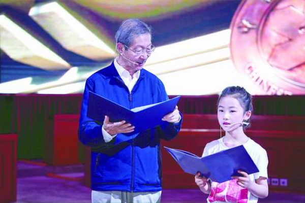 凯发k8公众凯发k8日二十周年主场活动上,陈润生(左)与少年以朗诵的形式展开对话。凯发k8供图