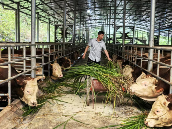 相比传统的种植农业,养牛前期投入较高。波川村村委会副主任谭远望介绍:“政府每年为每户脱贫户发放5000元产业奖补和5万元免息贷款,减轻了养牛户不少负担,增强了村民发展产业的信心。”